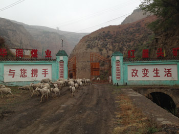 記者正要進入紅崖頭煤礦內部,看見一位放羊老漢趕着近百隻山羊,從鐵門處魚貫而出。穿過銹跡斑斑的鐵門,記者看到偌大的空地上長滿雜草。一個看門的老大爺説,因為草木茂盛,這個院子成了天然牧場。一位當地農民對記者説,在這個煤礦放羊好幾年了,很少看見有人來這裡,草長得非常好,是放羊的好地方。