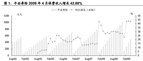 歷來以營銷見長的平安保險,今年繼續將業績改善的希望放在了保費增速上。分析師認為,平安的競爭力體現為個險渠道優勢帶來的保單價值優勢,這是公司值得長期持有的重要理由。但也有機構&&,雖然平安保費繼續高增長,但難獲合理利差。 中國平安2009年1-4月壽險保費收入501.5億元,同比增長42.88%,壽險保費增速依然保持高位。平安財險1-4月保費收入119.52億元,同比增長20.98%;此外,平安健康實現保費收入0.39億元,平安養老保費收入4.82億元。 第一創業證券分析師黃秋菡認為,平安逆勢擴張時機恰當。今年以來,平安進一步加大銀保渠道建設,銀保業務增速在100%以上,而同業對手多數收縮銀保,使得平安的擴張面臨的競爭壓力遠小於去年,市場份額也相應提高。由於銀保銷售的多數是一些低保障、高投資産品,加之中間費用較高,造成銀保往往是一項“不盈利”業務,但只要費用控制得當,銀保同業可以創造利潤,在今年的銀保競爭形勢下,費用率會有所下降,而資金成本率也比去年低,平安的逆勢擴張正是一個“恰當”的時機。 第一創業證券認為,平安價格進入合理區間,長期競爭力突出。按照各業務進行價值評估,其中,壽險業務採用DCF修正後內含價值法,其餘業務採用PE法,各項業務匯總後得到平安集團的2009年評估價值為48.21元。根據上月判斷,目前股價已經進入一個相對合理區域,繼續上行的壓力增大,事實也驗證了這一點。不過,長期來看,公司的競爭力體現為個險渠道優勢帶來的保單價值優勢,這是公司值得長期持有的重要理由。 不過,黃秋菡認為,通脹預期若不能變為加息操作,對壽險公司有弊無利。通脹並不能直接對壽險公司帶來利好,而是由通脹導致加息從而提高收益率的路徑實現,否則,在通脹環境中,保單維持成本往往高於評估假設,反而會造成虧損。此外,在加息初期,若保險公司沒有留存較多的現金或銀行存款,並不能享受利息收入增加,反而可能承受已有債券價格貶值的壓力,且無法大量買入低價債券,短期內對公司的投資收益造成負面影響。因此,對加息始終持謹慎樂觀的態度,更多要看各家公司的資産結構以及操作能力。 國泰君安分析師彭玉龍也認為,在投資收益率上升未有保障情況下,平安很難獲得合理的利差。一方面是儲備在減少,另一方面投資收益率的上升並沒有保障,很難以4.75%的結算利率而獲得合理的利差。平安實際上是在賭未來投資收益上漲可以彌補目前的高結算利率産生的成本,在平滑的精算假設前提下,保費增長即可獲得新業務價值的提升,從而提高估值水平,但有必要提醒的是,利差能否最終獲得,完全取決於未來的投資收益率情況,而從近期投資收益率的情況和投資環境來看,風險並不小。