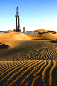 圖為中國石油集團位於塔裏木盆地裏的沙漠鑽井。