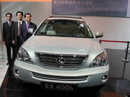 LEXUS雷克薩斯旗下最具突破性和創新性的車型RX400h於1月23日在中國正式上市,售價81萬元。RX400h是全球首創的油電混合動力豪華SUV,其油電混合動力系統包括3.3升的V6發動機、前電動機和後電動機,提供電動四驅功能,綜合輸出功率為200千瓦。RX400h從0加速到100公里/小時僅需7.6秒,優於許多6缸豪華SUV,而綜合油耗僅為8.3升/100公里,大大超越了豪華SUV,甚至優於很多中型轎車,同時其超低廢氣排放達到了歐Ⅳ標準。