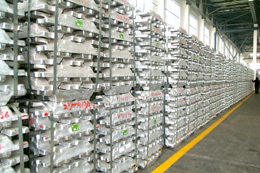 電解鋁車間內準備出廠的成品鋁錠。(本報資料照片) |