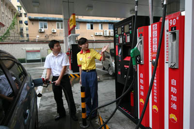 國內首座真正意義上的全付費自助式加油站近日在蓉城成都開業,這座加油站由中國石油四川銷售公司出資170余萬元興建,共有5&加油機20把油槍,能對外出售90號、93號、97號汽油和0號柴油。這種自助加油站除了可以進行5至100元的現金交易外,更可以接受各種銀行卡、IC加油卡進行消費。 “全付費自助式加油站不僅開闢了一個全新的經營模式,也為消費者帶來了一種與國際接軌的全新體驗。”中國石油四川銷售成品油分公司總經理朱力洋説,“首先,大大降低人力成本,以前加油站有18名工作人員,實行自助模式後只配備了8名工作人員,以後還要減人;同時,按照國際慣例,自助加油站的油價比普通加油站便宜,首座自助加油站比普通加油站每升便宜5分錢。” |