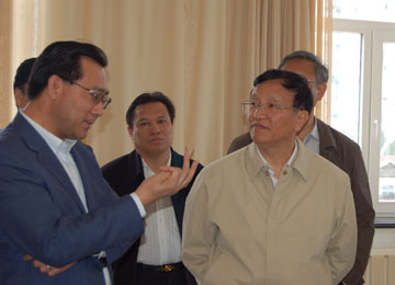 國家發改委副主任、國家能源局局長張國寶(右)稱讚龍源集團是風電行業主力軍,並對龍源集團取得的輝煌成績&&熱烈祝賀。圖為張國寶在視察龍源黑龍江伊春大箐山風電場時,聽取謝長軍(左)的匯報。