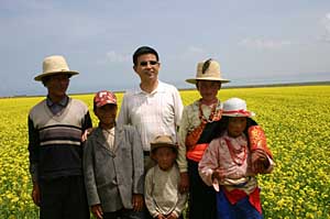 青海湖畔油菜花盛開了,倒淌河鎮的藏族牧民官卻加一家人從清晨就開始了一天的忙活,但不是忙活傳統的農牧活,而是全家人牽着漂亮的白牦牛和裝扮一新的棗紅馬,在湖畔自家的油菜地旁紮好帳篷,等待游客的到來。 他家的價目表很簡單:進入油菜花地照相一人一次收1元,騎牦牛或騎馬照相一人一次收2元,騎馬一圈收5元。一個月下來,少説也有千八百元的進賬了。官卻加告訴記者,這幾年,每年這個時候他們都經營這項“旅游”生意。“(環湖賽)好啊,外面的人來了,我的客人就多了,很高興。”他真是沒有想到,就連自家的牛羊也能當模特,掙錢。 自開辦環湖賽以後,環湖地區很多官卻加這樣的人家都萌生出強烈的旅游致富意識。游客漫步在風光旖旎的湖邊,不時遇到藏族牧民會熱情地邀請你騎馬,穿藏服照相;打扮得花枝招展的藏族小姑娘會擺出很酷、很時尚的姿勢與你合影;滿臉皺紋的藏族阿奶也牽着一頭可愛的小羊羔,提供給游人照相收錢。當然,別忘記付錢,一次一元! 以往,青海湖畔盛開的油菜花僅僅能給當地帶來農業豐收的喜悅。如今,富有經濟頭腦的農牧民從中覓得新商機,紛紛在自家花地裏開闢了專供留影的區域,有的還在地裏豎起了寫有“油菜花旅游觀光區”的牌子。 記者看到,有的花地中還站着身着藏族傳統服裝的少女,穿梭於花叢中和游人合影。一打問,原來她們都是花地主人家的孩子,專門身着盛裝陪游客照相。對游客來説,在盛開的油菜花叢中,在花一樣的藏族女孩陪伴下,留下一張“待到山花爛漫時,她在叢中笑”的倩影,所費不多。可對當地農牧民來説,由於這裡是青海的王牌景點,旅游的黃金季節,客流量很大,這也能給他們帶來不菲的收入。