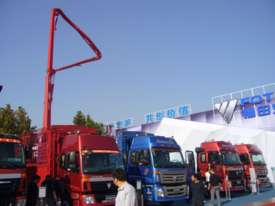 濟南卡車展上展出的部分重型汽車。本報記者:呂福明 攝 |