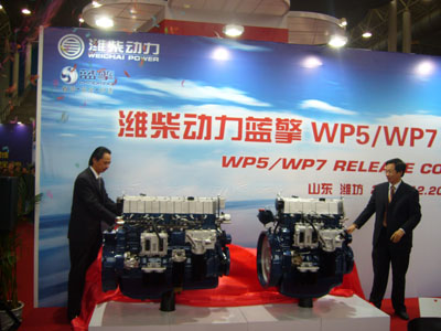 濰柴集團在2009年商務大會上推出的兩款柴油機。本報記者:呂福明