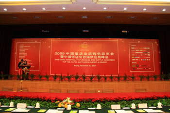 圖為日前在北京舉行的2009中國飯店業採購供應年會會場。張啟欣