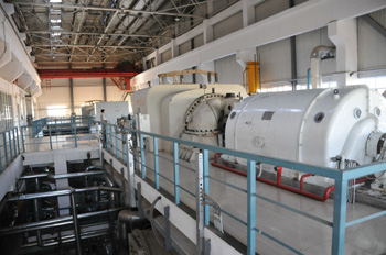 毛烏蘇生物質熱電廠發電機組。本報記者 吳國清/攝 |