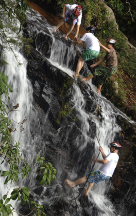 游客在海南省保亭呀諾達景區參加探險游。新華社記者 趙穎全/攝 |