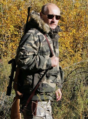 為促進俄羅斯的內需,也為印證自己不僅有強壯胸膛還有時尚觸覺,普京穿上了一款迷彩大衣,配以獵槍、墨鏡等道具,深入到雪豹保護區進行外景拍攝。
