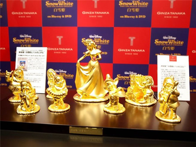 幸福夢想背後是出版人的辛苦創想與製作。為紀念迪斯尼1937年動畫經典藍光光盤的出品,大版珠寶商 Tanaka Kikinzoku 製作了這套價值355000美元的白雪公主與七個小矮人擺件。不過,即便是那些誰能夠負擔得起這驚人價格標籤收藏者,也無法購買得到。因為Tanaka Kikinzoku 宣布不掛牌出售。