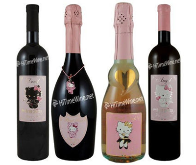 源自日本的Hello Kitty品牌向來以卡通工藝品聞名,目前意大利葡萄酒商則採用該形,酒標上印有可愛的卡通貓頭形象象推出Hello Kitty 葡萄酒。Hello Kitty葡萄酒首先於去年年底在日本上市,大獲好評,現時在新加坡、美國和俄羅斯都有銷售。