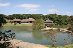 離首裏城不遠的“識名園”是接待中國冊封史的園林,小橋流水,由整塊火山石雕刻的小拱橋別具特色。湖中小島上還有全日本罕見的稱為“六角堂”的六角形涼亭,具有鮮明的中國特色。