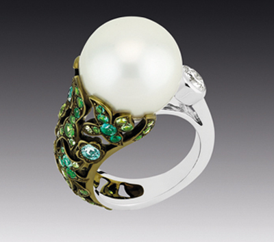 這些珠寶以非傳統的方式混合了不同的材質和構造,從而開啟了嶄新的篇章。就如同俄耳甫斯神奇的七弦琴,這些珠寶擁有催眠的魔力。也許,俄耳甫斯甜美的樂曲使得這些珍貴的鑽石和光亮的石頭瞞過賽壬和地下守護神的眼睛從而被藏匿起來。一個盤繞的以鑽石包裹的鑄造圓環被整齊纖細勻稱的黑色柱條套住,並以完美的白珍珠串固定。放射狀的月光石、鑽石和蛋白石組合暗示北方奶白色的天空,水晶組成的釘狀花瓣插入其間,結合形成倣古的花朵。最讓人喜歡的是一條以月光石珠子、珍珠、藍灰色尖晶石和鑽石渦旋串連起來的項鏈,它就像倒映在深夜冰冷海面上的漫天星斗一樣美麗。看著這些夢幻般的珠寶,靜靜的冥想,如同掉入它們的魔咒一般。