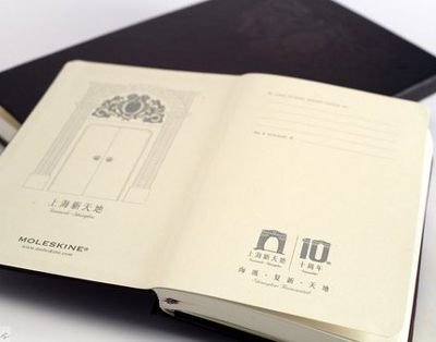上圖這個筆記本,由傳奇筆記本品牌Moleskine為慶祝上海新天地開幕10年而特別設計,而上海新天地專櫃也是Moleskine今年三月在全球開設的第一家零售專櫃。Moleskine新天地10周年限量版筆記本共分口袋型橫間筆記本和大型純白筆記本兩種款式,經典黑色封面均印上石庫門標誌式的門楣雕花,扉頁印有上海新天地的10周年標誌,還附送一本石庫門風情圖片的小冊子。售價分別為口袋型橫間筆記本RMB315,大型純白筆記本RMB390,8月起售。