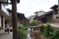 下梅村離武夷山不遠,幾乎是順路就過去了。初到下梅,時近黃昏。夕陽為村子撒上一層金,似罩上一層已古舊了但仍然輝煌的薄紗。村子北面是被雲霧環繞的群山,幾朵雲不時脫離群體飄出來,靜謐無言地俯視眾生。如果抬頭望天的人偶然撞上它們的視線,或許會發現那其中藏着安然和幾分狡黠。
