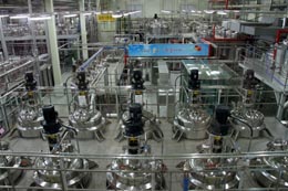 在工作人員的指引下,我們接着參觀了常人難以進入的VVIP區——人參精加工區。這裡又是另一番天地。透過玻璃窗,我們看到幾百台圓形的大型機器,沿着管道有序排列,一刻不停地運轉着。這就是韓國人參公社特殊的人參精製造工藝,將紅參的精華——汁液濃縮成人參精,製成各類産品,方便消費者食用。整個人參精的加工過程需要15天,不可停歇。為保證絕對安全,加工區域實行全封閉。