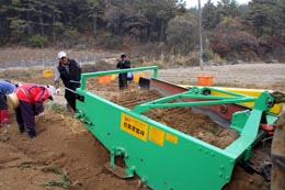 在利川,我們看到大片金黃色的人參田,農民在田裏勞作。如今收穫人參實現了機械化,幾輛大型的工作車輛沿着耕地渠道緩緩開過,將深埋地下的人參翻起至地表,這個過程需進行兩次,一次深一次淺,以便在不傷害到嬌弱人參的前提下,將全部人參挖出。接着,農民們再手工將挖出的人參裝入大籮筐,搬上運輸車輛運走。