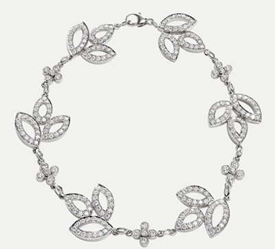 Harry Winston的Cluster經典設計始於20世紀40年代,靈感來自於大自然。從古典百合花型草圖中擷取靈感的Lily Cluster系列,可以為你的夢幻希臘式晚禮服增添更多的光彩。