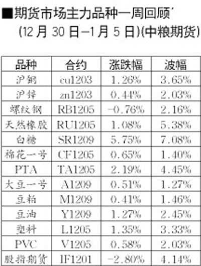 期貨市場主力品種一週回顧[2011.12.30-2012.01.05]