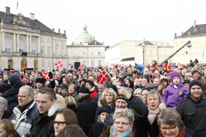整個慶典活動在今年的1月14日和15日進入高潮,丹麥的政要人物和歐洲其他國家的王室成員紛紛到場,向瑪格麗特二世&&祝賀。特別值得一提的是,女王與丈夫亨裏克親王在14日乘坐四輪馬車,在48名皇家衛兵組成的護衛隊的護送下從阿馬林堡王宮出發,在哥本哈根市中心地帶游行。女王所乘坐的皇家馬車是所有皇家馬車中級別最高的和歷史最悠久的,它建造於1842年,表面鍍了24K金,只在非常重要的場合使用。當日,數萬丹麥民眾頂着寒流,聚集在阿馬林堡宮廣場和游行的終點市政廳廣場,不少民眾陪同女王的車隊走在街頭,走完全程,向他們所愛戴的女王&&忠誠和祝賀。