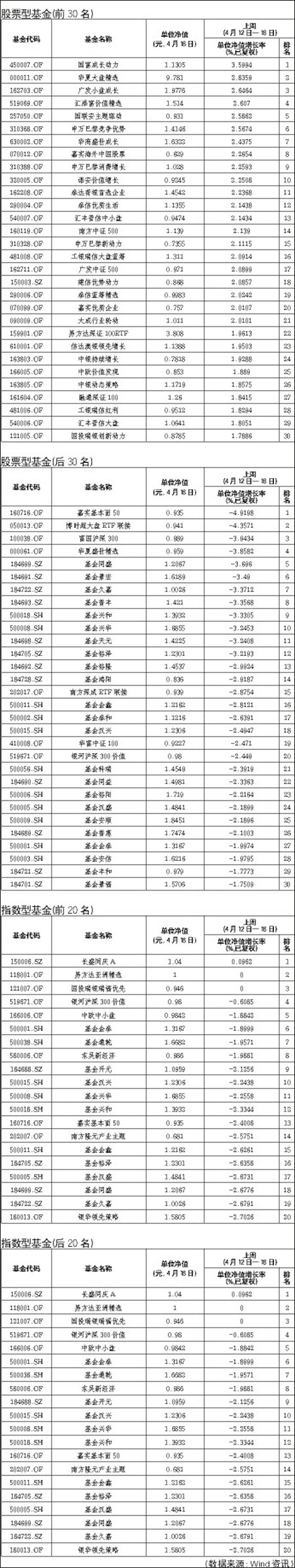 股票型基金排行榜[2012-04-20]