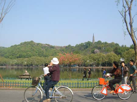 游歷過巴黎、布拉格等城市的北京女孩曹晶對杭州“一見傾心”,她認為杭州帶有歐洲城市那種閒適、優雅的氣質,騎自行車穿行在垂柳依依的湖邊,能更深刻地體會杭州的迷人之處。“西湖周圍的道路也很好,有自行車道,每個地方都很貼心地設置了無障礙通道,騎自行車游玩真爽。”
