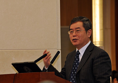 | 圖為中國社會科學院副院長李揚在1月15日舉辦的“2011中國經濟展望高層研討會”上發言。李賀/攝 |