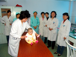 “看著兩三個月的孩子住院治療,可真讓人心疼。剛開始小韓大夫往小傢伙頭上扎針,我都不忍心看,後來發現,小韓大夫真是‘神手’,刷刷刷,20個針不到一分鐘全都準確無誤地扎上,就像電視裏演的梅花針功夫,簡直是一種藝術。”在記者面前,老人一直在感慨。 “哎,對了。你這樣抱着孩子,他會感覺很舒服,也有利於他成長……”一個周二的下午,在鄭州兒童醫院七樓會議室內,聚集了很多抱孩子的媽媽或年輕的小夫妻倆,醫生和護士正手把手地教他們如何抱孩子?如何喂奶?如何教孩子説話……原來,這是鄭州兒童醫院康復治療中心每兩個月舉行一次的“康復樂園”。看著那些活潑可愛的孩子,你很難相像他們原本是一個個腦癱患兒…… 經過13個春秋的洗練,他們率先引進水療、蠟療、腦循環治療儀,開展中藥熏蒸治療各種類型腦癱、A型肉毒素治療痙攣型腦癱等;率先在全國提出腦癱的超早期、早期診斷治療及康復評價,使腦癱的診斷治療進一步規範化和量化,縮短療程,減輕家長負擔,提高腦癱患兒的治愈率,減少殘疾兒童的發生。全國同行業推廣了鄭州市兒童醫院的這一做法。