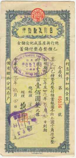 | 四川美豐銀行儲蓄券 | 提要:中外合資銀行的出現,是近代中國資本主義經濟已經起步發展但又尚未獲得充分發展的産物,可以視作現代經濟組織的一種過渡形式。當時社會各方均對它抱有較高的期望,指望其能夠為中國的近代化建設作出一份特殊的貢獻。然而,中外合資銀行在實際運行過程中卻始終存在着三大矛盾,從整體上影響和削弱了它的作用,並最終導致其完全失敗。