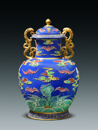 琺瑯粉彩壽山福海雙龍耳蓋瓶。 | 本報訊
