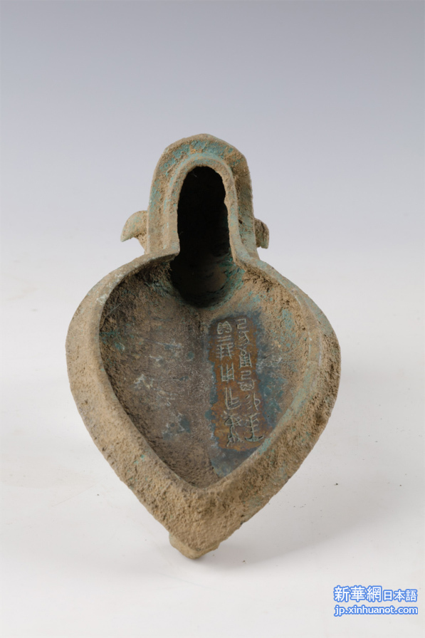 邵家棚遺跡から出土した12文字の銘文を持つ青銅觥蓋(こうがい、酒器のふた)。(資料寫真、鄭州=新華社配信)
