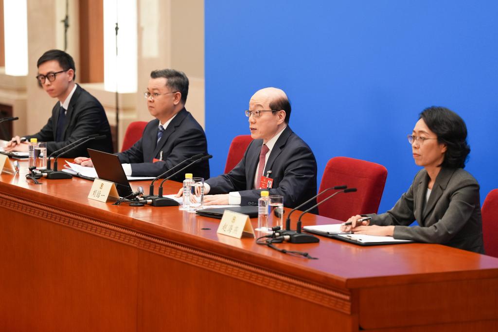 中國人民政治協商會議(政協)第14期全國委員會第3回會議は3日、北京の人民大會堂で記者會見を開いた。同會議の劉結一(りゅう・けついち)報道官が國內外のメディアに向け、今回の會議について説明し、記者の質問に答えた。(北京=新華社記者/李賀)pagebreak