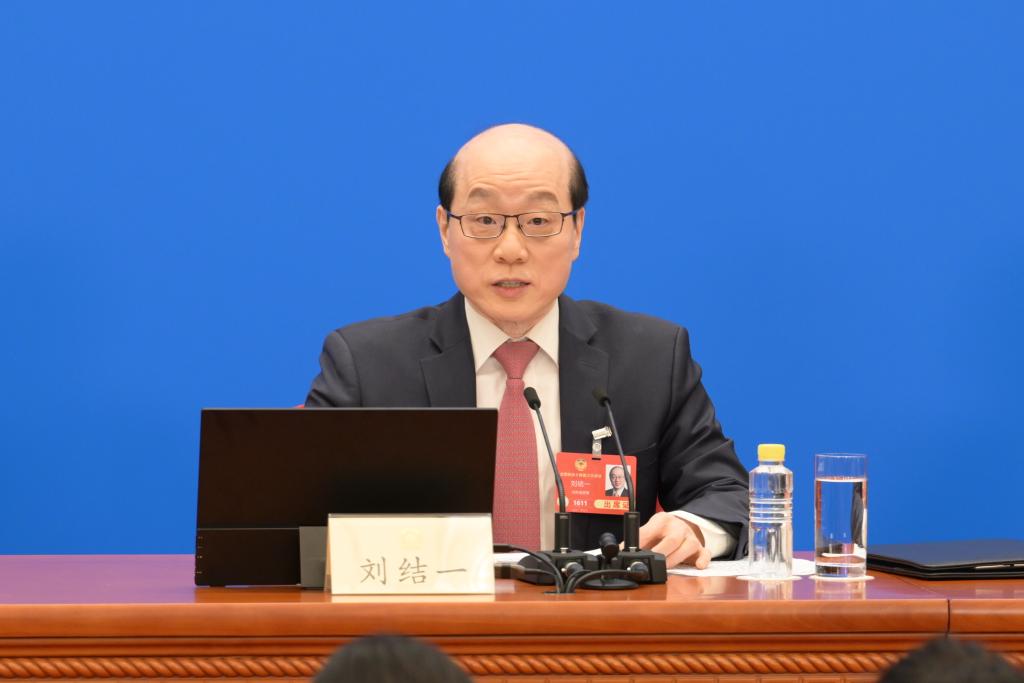 中國人民政治協商會議(政協)第14期全國委員會第3回會議は3日、北京の人民大會堂で記者會見を開いた。同會議の劉結一(りゅう・けついち)報道官が國內外のメディアに向け、今回の會議について説明し、記者の質問に答えた。(北京=新華社記者/金良快)pagebreak