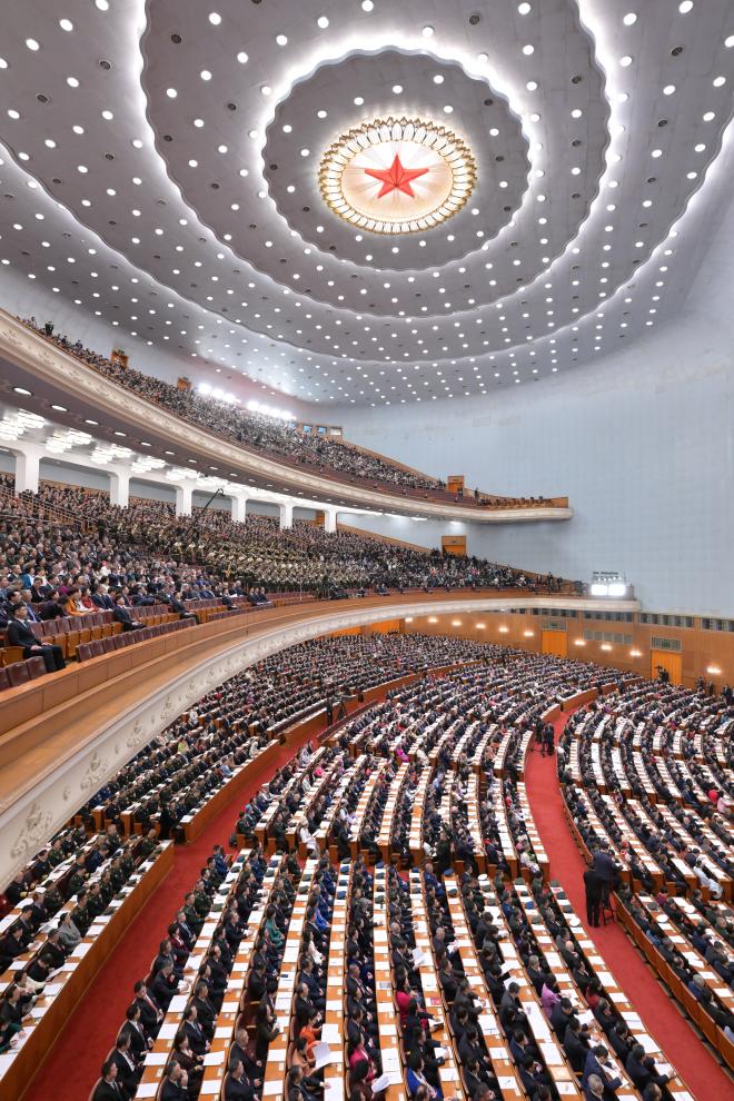 中國の第14期全國人民代表大會(全人代)第3回會議の開幕會議が5日、北京の人民大會堂で開かれた。(北京=新華社記者/邢広利)