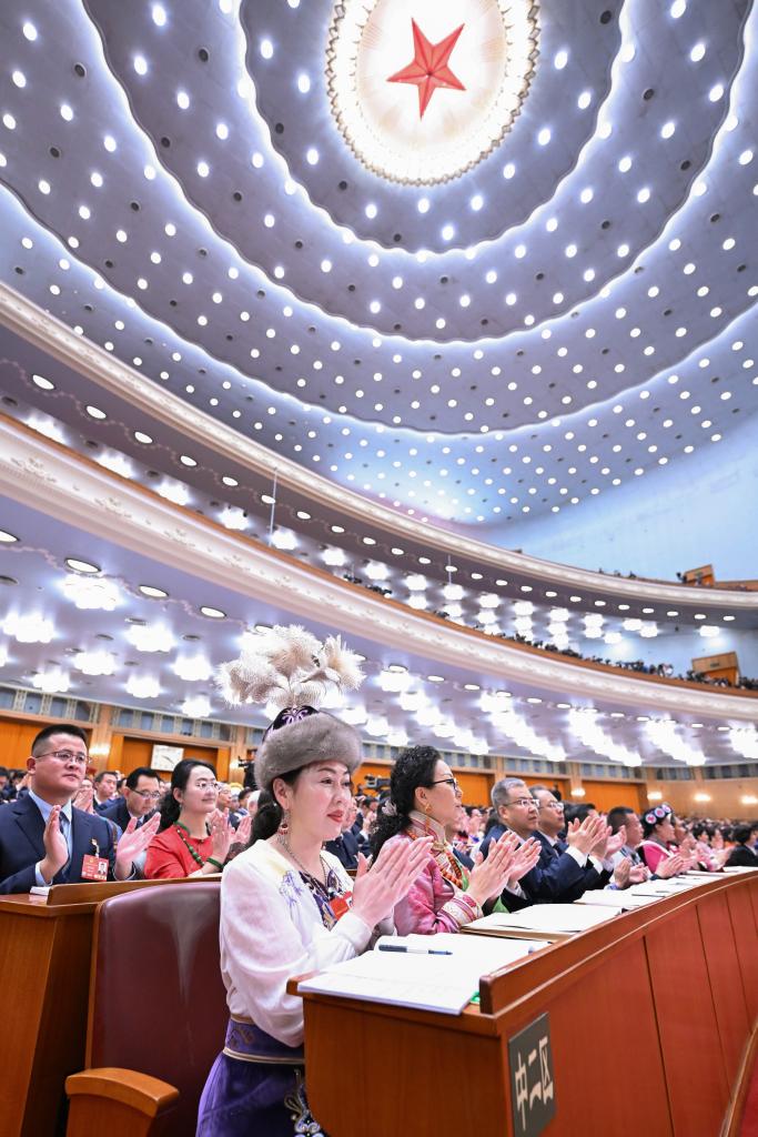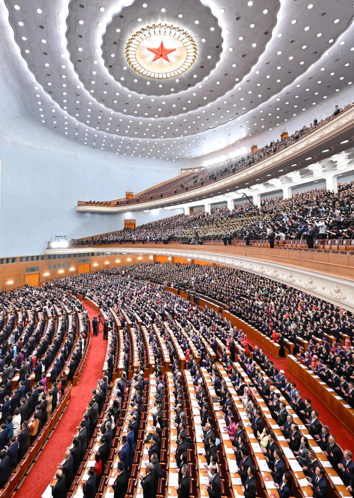 中國の第14期全國人民代表大會(全人代)第3回會議の開幕會議が5日、北京の人民大會堂で開かれた。(北京=新華社記者/張領)