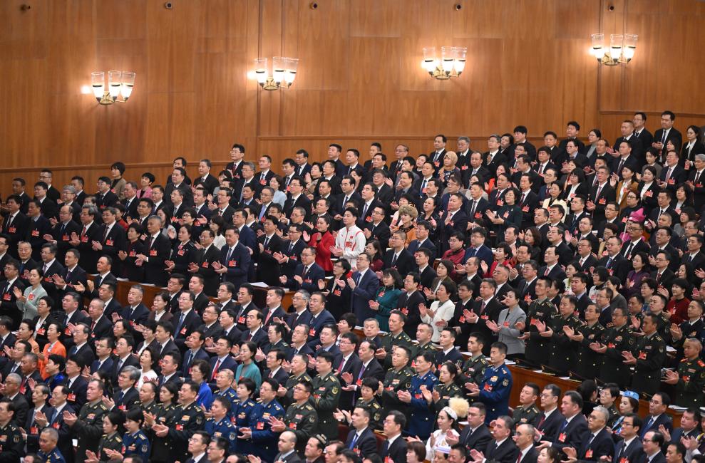 中國の第14期全國人民代表大會(全人代)第3回會議の開幕會議が5日、北京の人民大會堂で開かれた。(北京=新華社記者/李響)