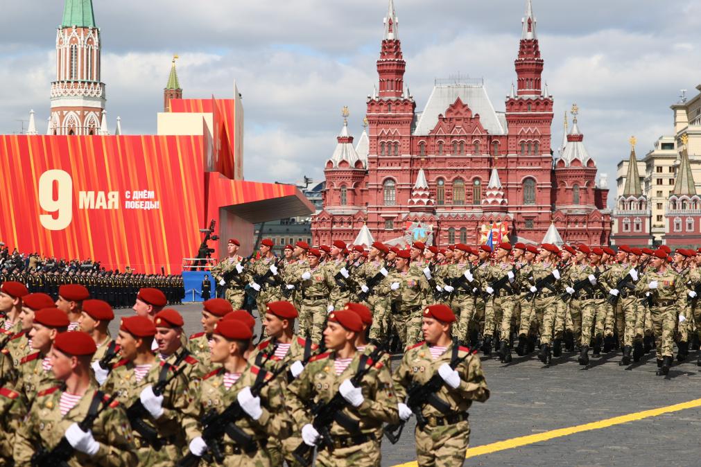 9日、ロシア・モスクワで、ソ連大祖國戦爭勝利80周年を記念する閲兵式に參加した軍人。(モスクワ=新華社記者/白雪騏)