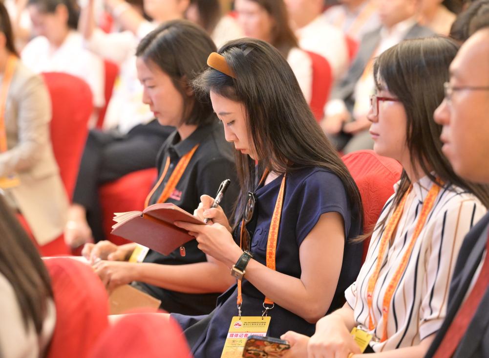 31日、中國人民抗日戦爭・世界反ファシズム戦爭勝利80周年記念活動プレスセンターの第3回記者発表會に參加した記者。(北京=新華社記者/李賀)