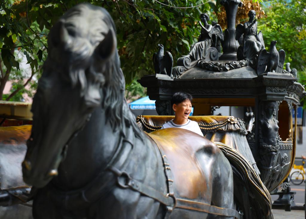 29日、天津市の五大道文化観光區で遊ぶ子ども。(天津=新華社記者/楊青)