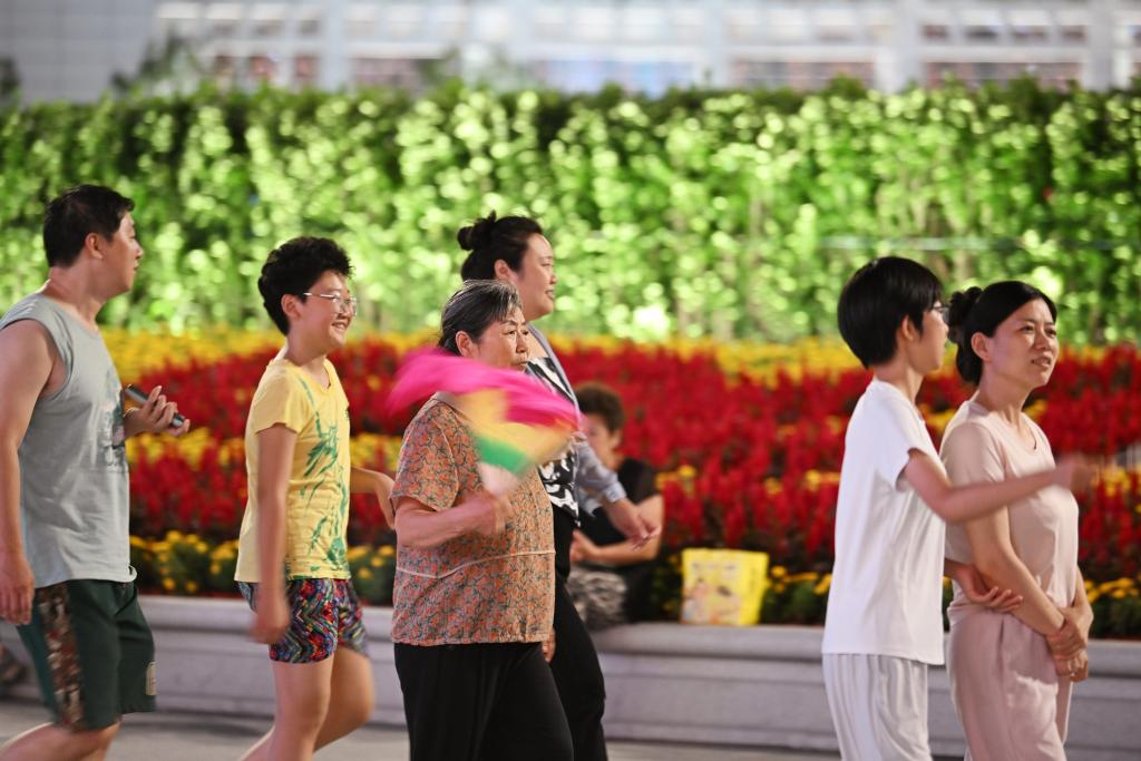 27日、天津市の五大道歴史文化街區にある民園広場でくつろぐ観光客。(天津=新華社記者/趙子碩)