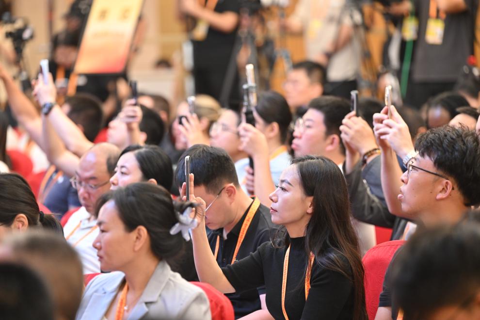 2日、中國人民抗日戦爭・世界反ファシズム戦爭勝利80周年記念活動プレスセンターの第3回記者會見を取材する記者たち。(北京=新華社記者/金良快)