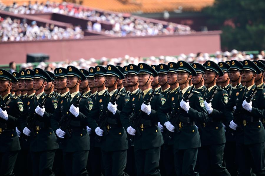 3日、観閲を受ける陸軍方隊。(北京=新華社記者/陳斌)