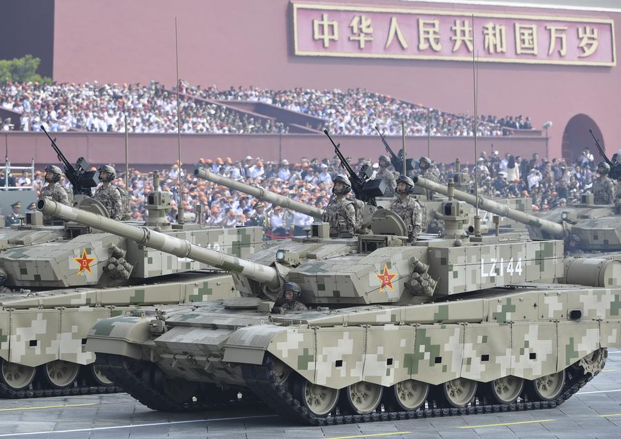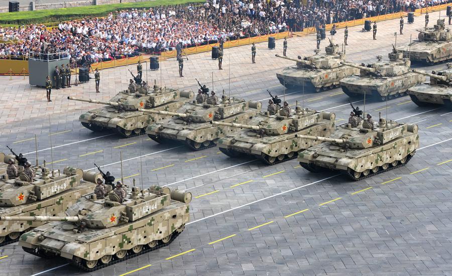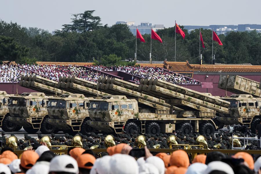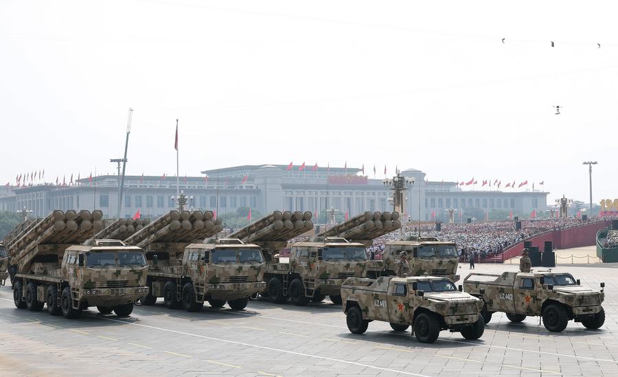 3日、観閲を受ける長距離砲方隊。(北京=新華社記者/陳誠)