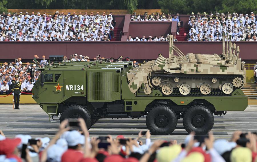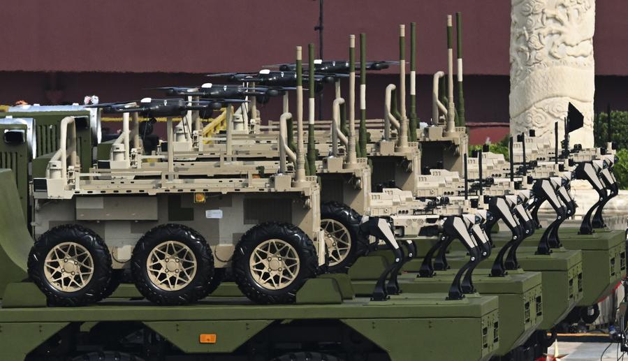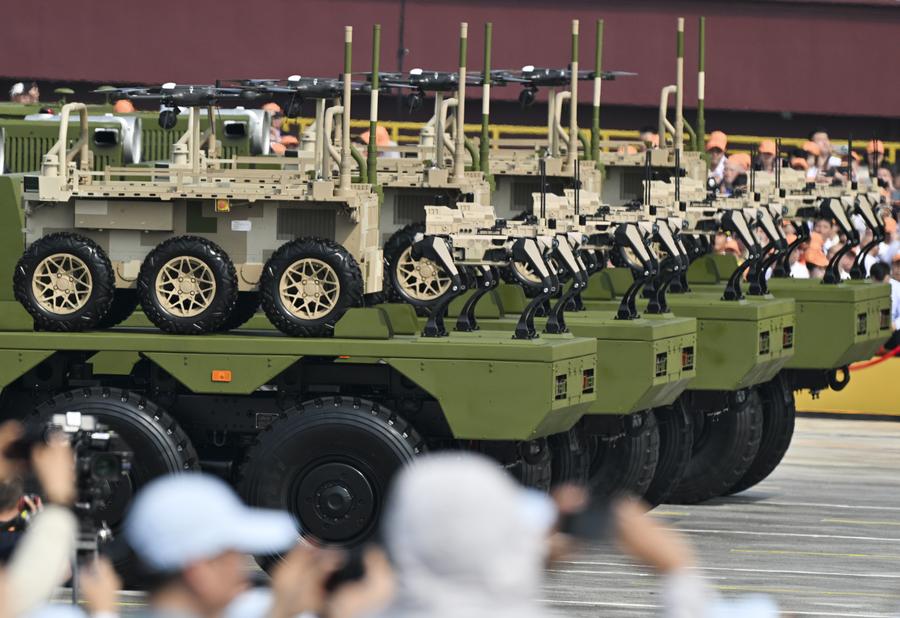 3日、閲兵式で観閲を受ける陸上無人作戦部隊の裝備。(北京=新華社記者/李嘉南)