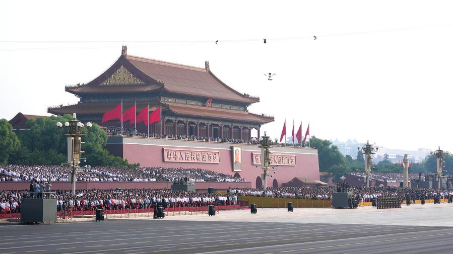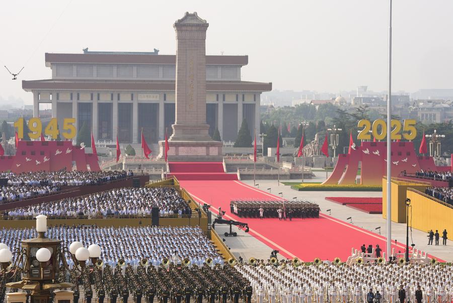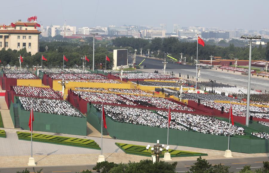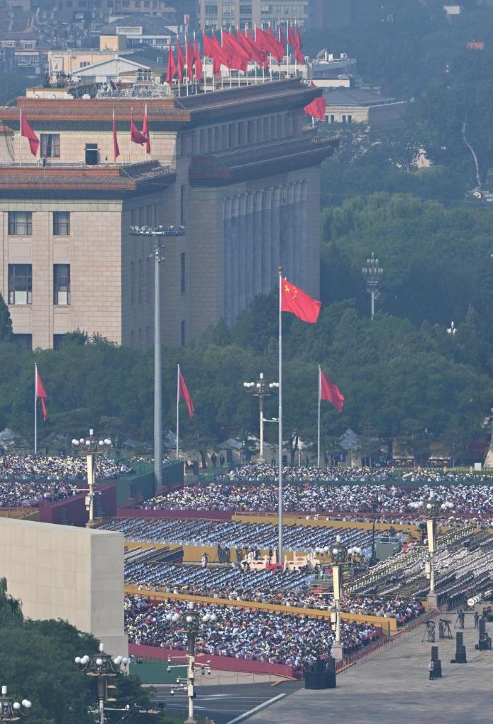 3日、中國人民抗日戦爭・世界反ファシズム戦爭勝利80周年記念大會の會場となった天安門広場。(北京=新華社記者/才揚)