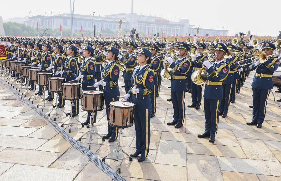 3日、演奏する中國人民解放軍連合軍楽団。(北京=新華社記者/張玉薇)