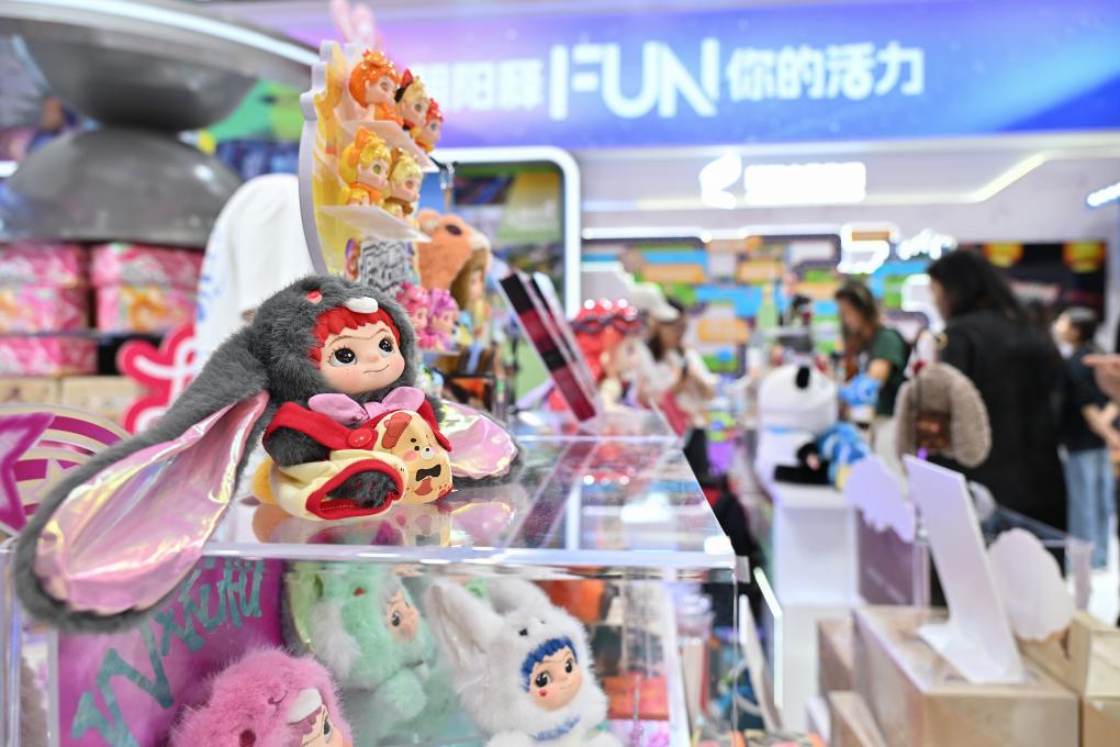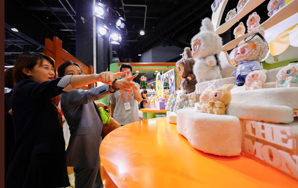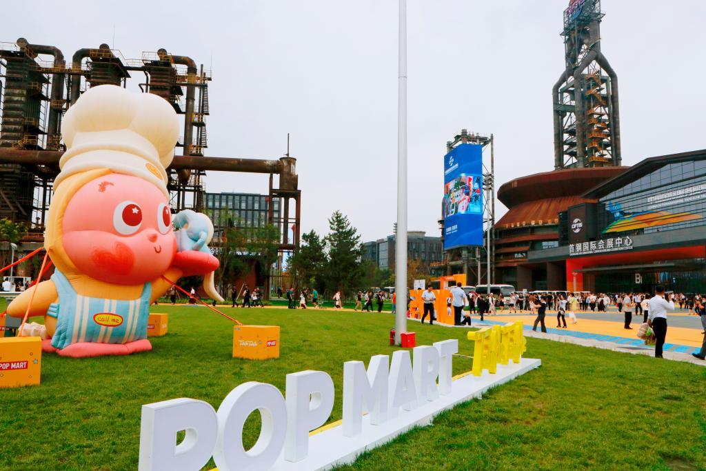10日、中國國際サービス貿易交易會のテーマ展示館でアートトイブランド「ポップマート」のブースを見學する來場者。(北京=新華社記者/常能嘉)