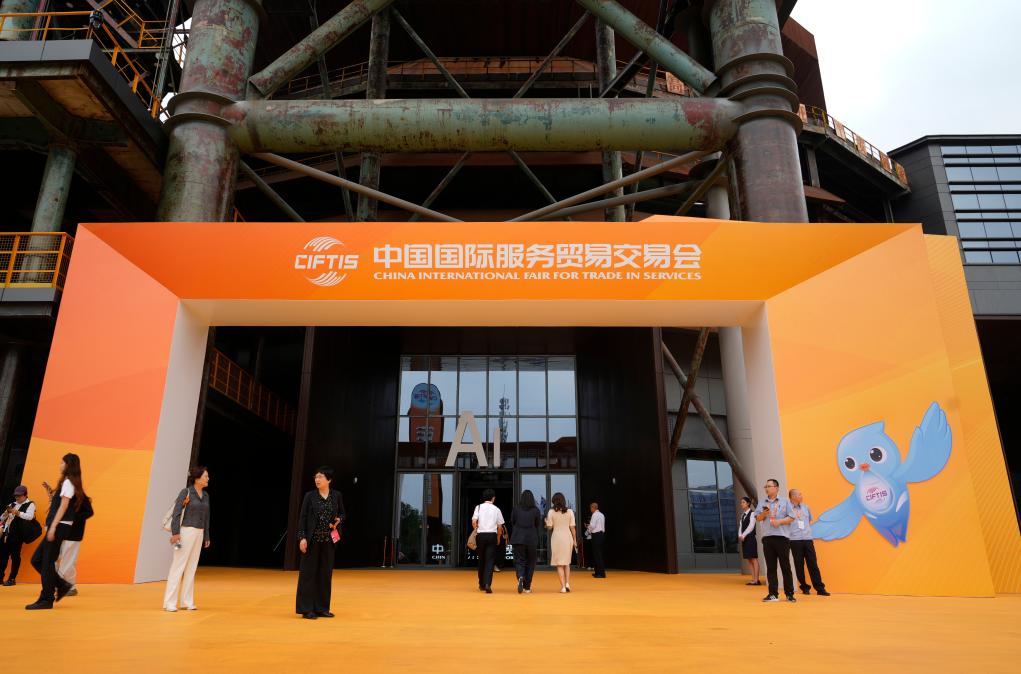 10日、中國國際サービス貿易交易會テーマ展示館の入り口。(北京=新華社記者/常能嘉)