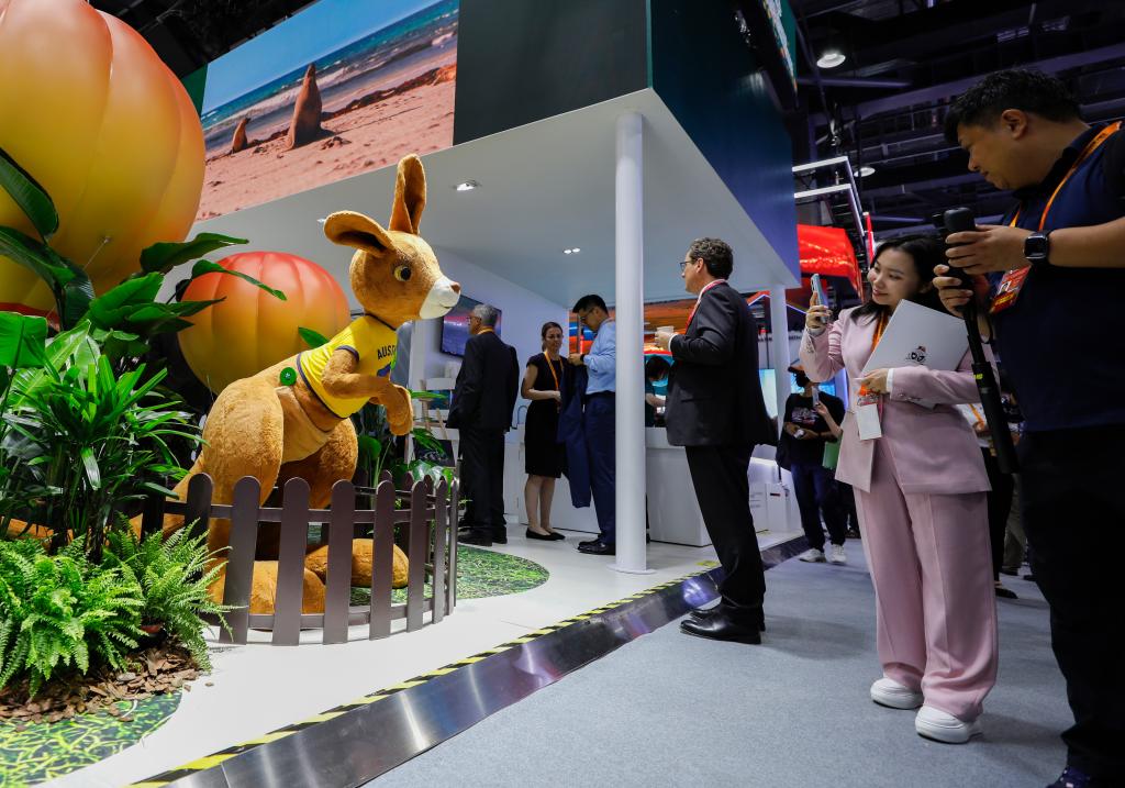 10日、中國國際サービス貿易交易會のテーマ展示館にあるオーストラリアのブースを撮影する來場者。(北京=新華社記者/常能嘉)